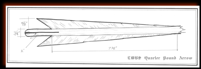 The EWBS Quarter Pound Arrow is a representation of a heavy military arrow used to penetrate armour. It is similar to those that were shot during the Hundred Years War.